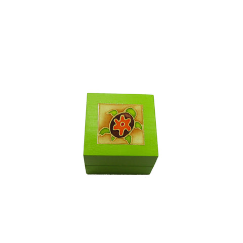 Small, Lime Green Wood Box with a Tea Light. It features a hand-painted Turtle. Each box is one of a kind. They make great gifts!