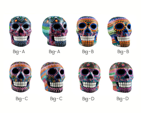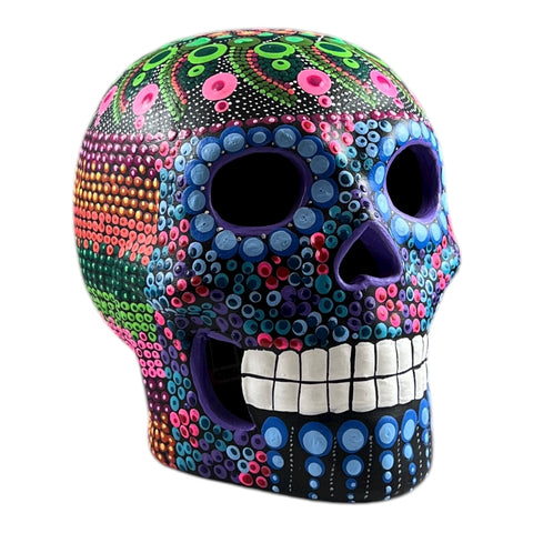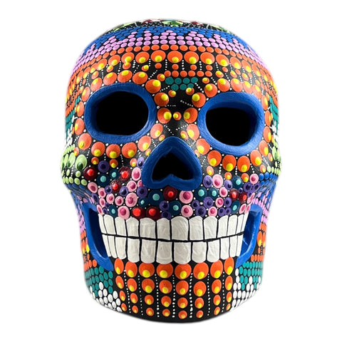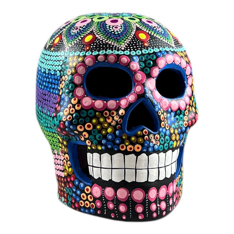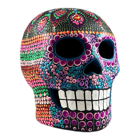 One of a Kind, Colorful Sugar Skull made of Clay and Hand-painted with "dots" technique.