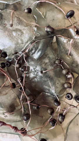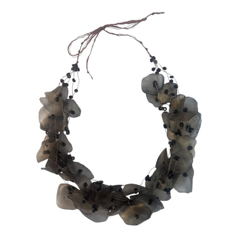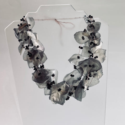 Each Necklace is One of a Kind. The Fish Scales are properly cleaned, then lacquered and Painted. Creating a true work of art, and a unique, light-weight, versatile Necklace that can be worn long or short or even as a Hair Ornament.