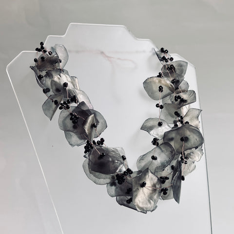 Beautiful, Eco-Friendly Adjustable Necklace & Earrings made with Recycled Fish Scales in a Black color.