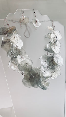 Beautiful, Eco-Friendly Adjustable Necklace & Earrings made with Recycled Fish Scales in a Silver color.
