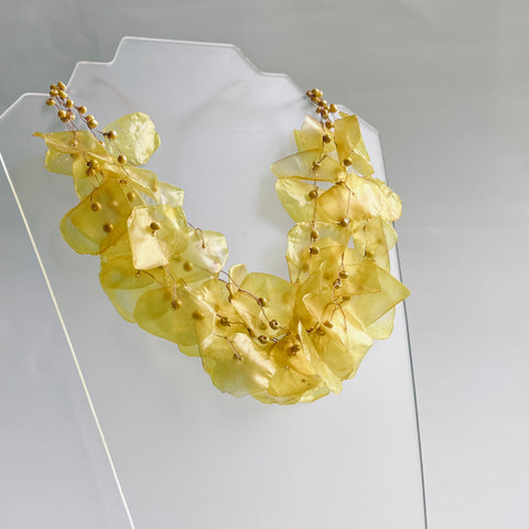 Beautiful, Eco-Friendly Adjustable Necklace and Earrings made with Recycled Fish Scales in a Gorgeous yellow color.